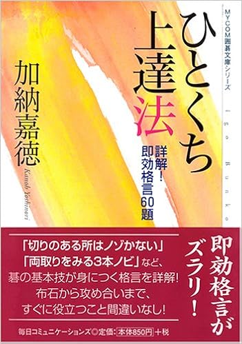 - タイトル: ひとくち上達法―詳解!即効格言60題 (MYCOM囲碁文庫シリーズ) (日本語) 文庫 – 2006/4/1 de 加納 嘉徳